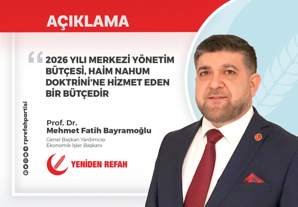 2026 yılı Merkezi Yönetim Bütçesi de vergi yükü, faiz yükü, bütçe açığı ve adaletsiz kaynak dağıtımı görünümü ile milletimizin yükünü artırmakta ve milletimizi kolay lokma haline getirmektedir. Haim Nahum Doktrini’ne hizmet etmektedir.