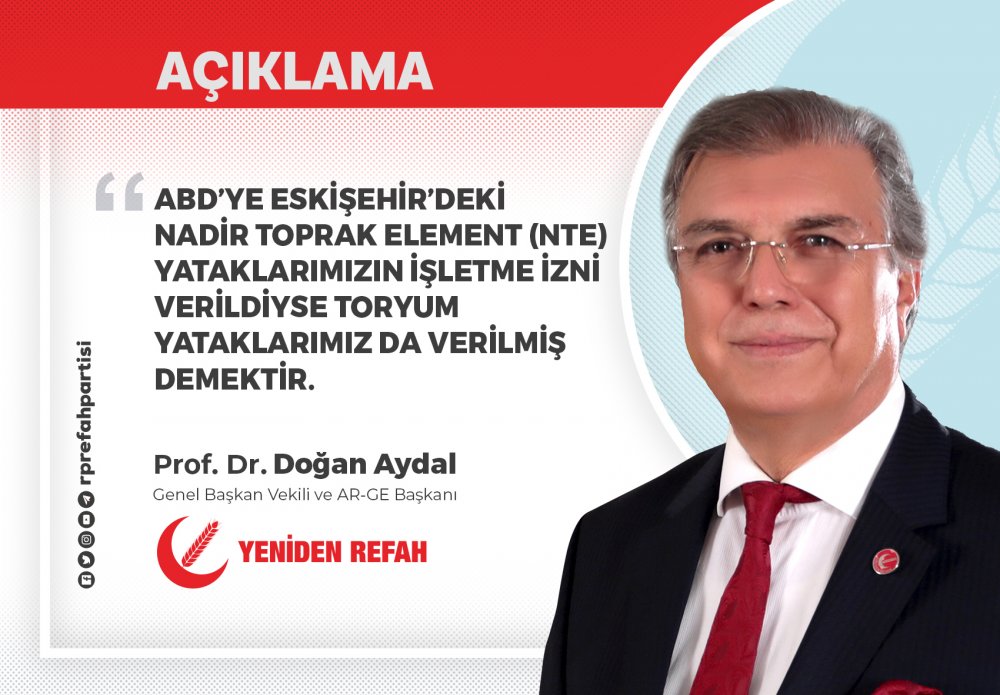 Eğer Sn. Cumhurbaşkanımız nadir toprakların verilmesi ile ilgili bir karar vermişlerse, Toryum yataklarımız da verilmiş demektir. Bütün siyasi partilerimiz bu durumu bilerek bu madenlerin satılmaması yönünde bir kamuoyu oluşturmalı ve ülke değerleri yok pahasına elden çıkartılmamalıdır.