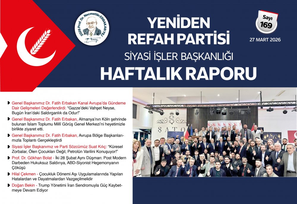 Siyasi İşler Başkanlığımızın haftalık raporu yayınlanmıştır. Yayının detaylarına aşağıdaki linkten ulaşabilirsiniz. Yayın Tarihi: 27 Mart 2026 | Yayın Saati: 18:11:58