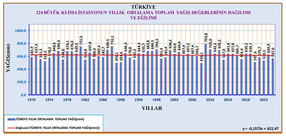 Kaldı ki, Meteoroloji Genel Müdürlüğümüzce hazırlanan tabloya dikkat ettiğimizde ve Türkiye’de son ellibeş yılın yağışı incelendiğinde geçmiş yıl yaşadığımız ortalamanın altındaki az yağışlı durumun 1972, 1973, 1974, 1982, 1983, 1984,1989, 1990, 1999 ve 2000 yıllarında da yaşadığımız görülecektir. Bu yıllardan sonraki yıllarda yağışların ortalama üstünde olduğuna da dikkat edilmelidir. Dolayısıyla bu yıl yağışların fazla olması anormal bir durum değildir. Son elli yılda en az yağış aldığımız yıl ortalama 493,1 mm ile 2008 yılıdır. Buna karşılık en fazla yağış aldığımız yıl da 793,8 mm ile 2009 yılıdır. Bu bakımdan bilimsel gerçekleri görmeyip farklı ülkelere sahip olmadıkları güçleri atfetmek ülke için hayırlı bir söylem olmayacaktır.